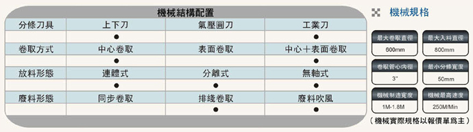 成品卷取方式:可配備板條式氣壓軸及滑差式卷取軸,適用更多材料的范圍,換軸方式經(jīng)特殊設(shè)計(jì),可以隨時(shí)更換。