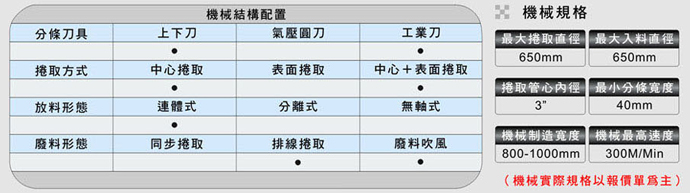 成品卷取方式:可配備板條式氣壓軸及滑差式卷取軸,適用更廣范圍,換軸方式經(jīng)特殊設(shè)計,可以隨時更換。
